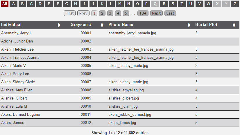 This report creates a listing of all records in the selected cemetery identifying the tombstone photos information with photos with no GPS coordinates. This is useful to determine which memorial records for a cemetery need updated tombstone photos.