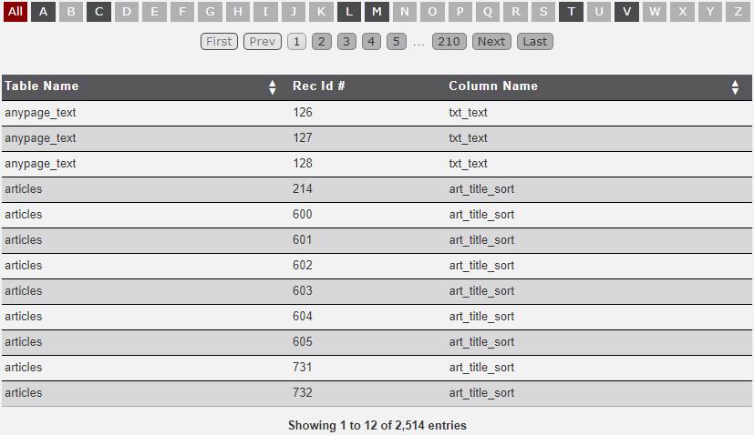 - Rec Id # - This column identifies the record number within the table where a search parameter was located.
